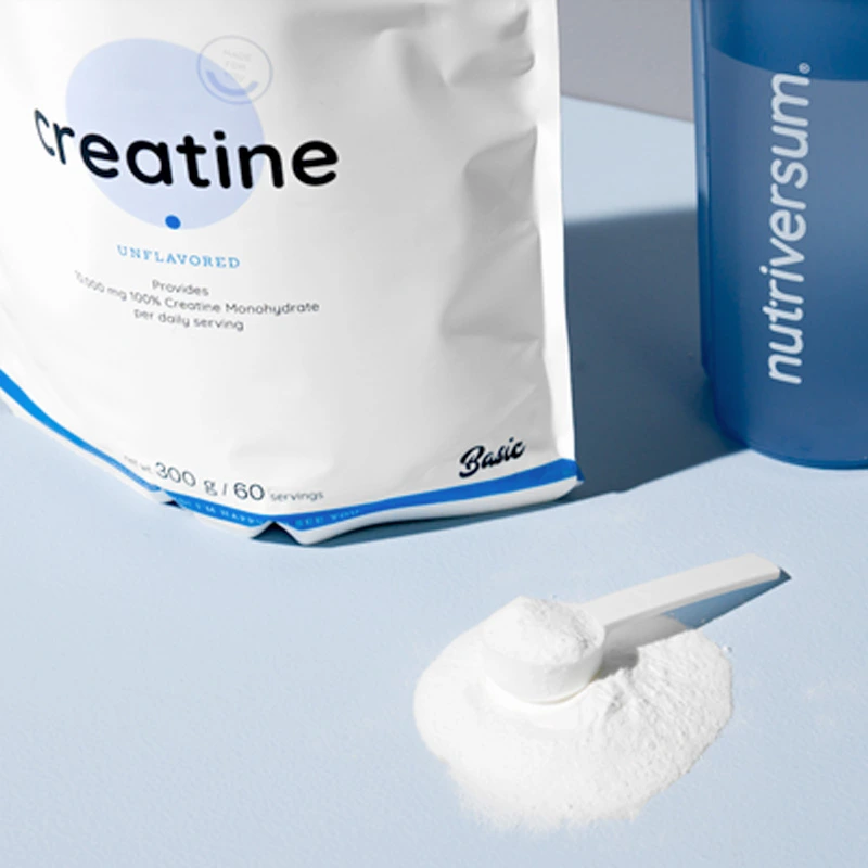 Es handelt sich um eine stickstoffhaltige organische Säure, die vor allem in den Skelettmuskeln vorkommt und den Muskeln hilft, die Energie zu gewinnen, die für die Kontraktion notwendig ist. Dein Körper produziert täglich etwa 1-2 Gramm Kreatin aus Aminosäuren, insgesamt macht es etwa 1% des Körpergewichts aus. Praktisch jedes Mal, wenn du Fleisch von anderen Tieren isst, zum Beispiel Rind-, Hühner- oder Schweinefleisch, nimmst du Kreatin zu dir. Wusstest du, dass je besser die Fleischqualität ist, desto mehr Kreatin es enthält? Obwohl das Kreatinmonohydrat, das du als Nahrungsergänzungsmittel kaufst, synthetisch hergestellt wird, hat es das gleiche molekulare Profil wie das im Körper vorkommende Kreatin und ist völlig sicher in der Anwendung.