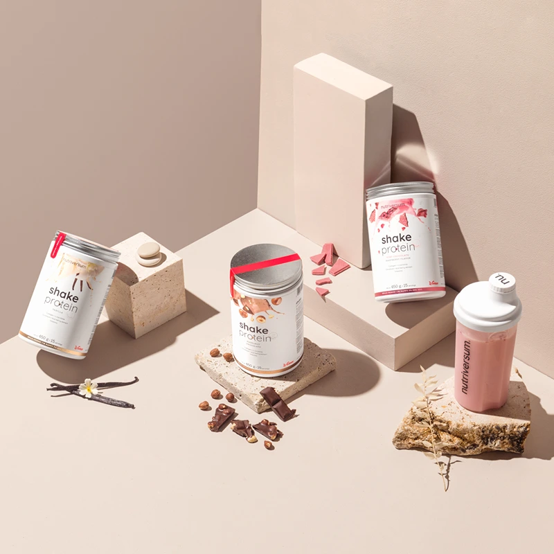 Wir wissen, dass viele proteinreiche Nahrungsergänzungsmittel mit unangenehmem Geschmack assoziiert werden oder nicht das erwartete Erlebnis bieten. Daher war der köstliche Geschmack bei der Produktentwicklung unserer Proteinpulver und -produkte ein wichtiger Aspekt. Natürlich sind Qualität und Wirksamkeit ebenso entscheidend, um den Muskelaufbau und die Regeneration zu unterstützen. Die Nutriversum Produktpalette bietet sowohl pflanzliche als auch tierische Proteine mit unterschiedlichen Vorteilen für den Körper.